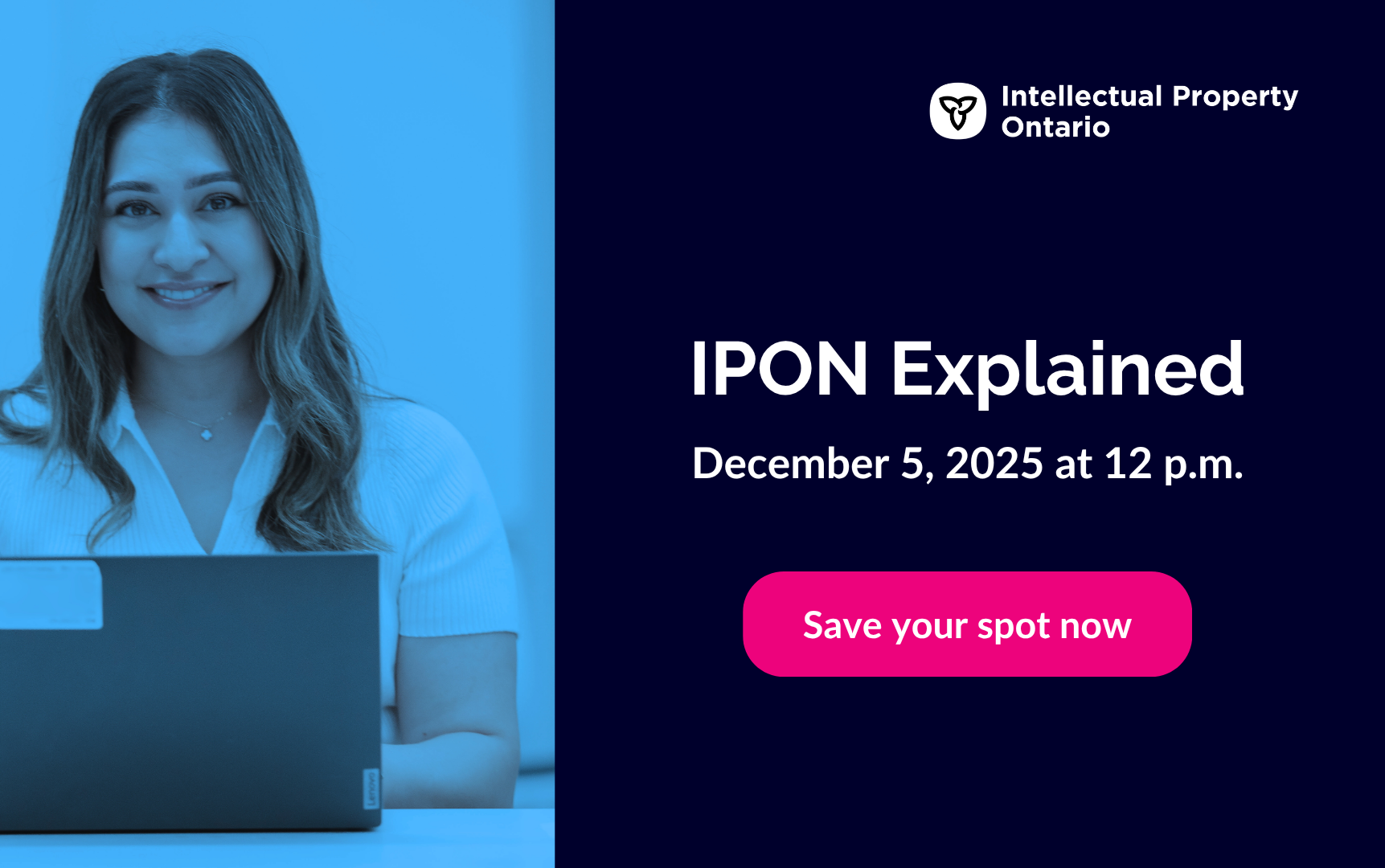 The Ministry of Economic Development, Job Creation and Trade (MEDJCT) is hosting a webinar with experts from key organizations in Canada’s IP ecosystem including Intellectual Property Ontario. Learn more and register for this free event.